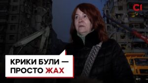 00:01:29 — розповідь Ірини, яка разом з внуком була у квартирі, коли російська ракета влучила у багатоповерхівку
